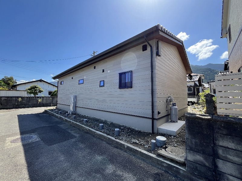 外観です。(玄関側は外構工事の資材がいっぱいなので、後ろからの写真を載せておきます)