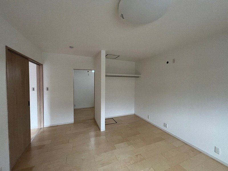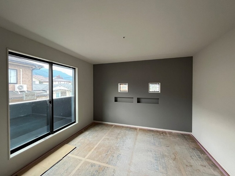 手前が洋室(2)、奥が洋室(3)。洋室(3)はご主人の音楽室になる予定です。窓がないのはそのためで、ギターやピアノのほか、ドラムも演奏されるということなので、壁全体に遮音ボードを施工する予定です。
