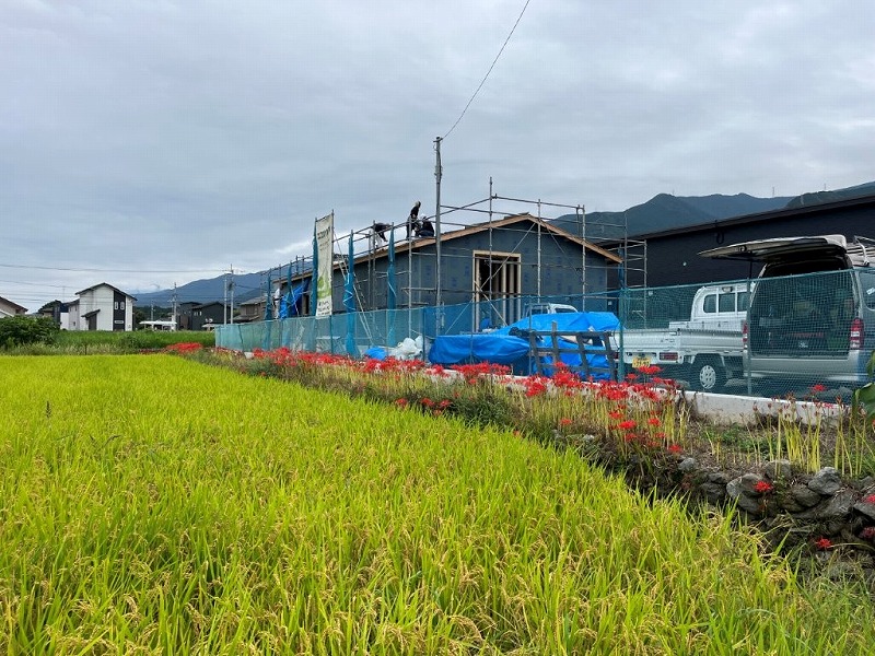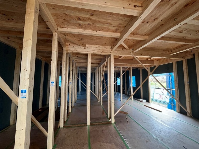 こちらは屋内の様子。木の香りがいっぱいで、家づくりの中でも好きなタイミングのひとつです。