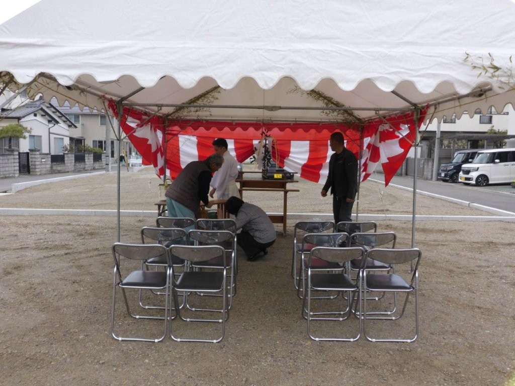 3月下旬に地鎮祭を執り行いました。下の写真はその準備中の様子です。