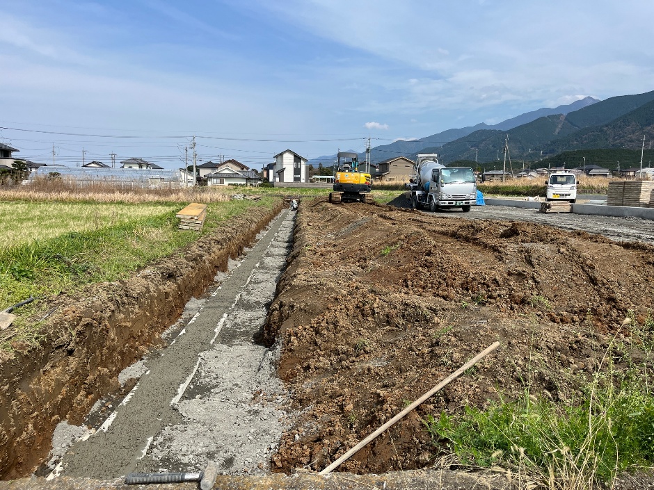 農地転用の手続きが完了し、いよいよ基礎工事の準備が始まりました。