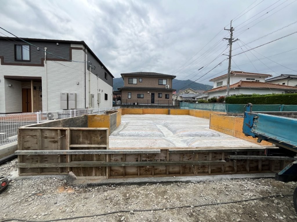 造成工事が終わり、ついこの間まで畑だった土地が、すっきりした宅地へと変わりました。いよいよ家づくりも本番。基礎工事が始まります。