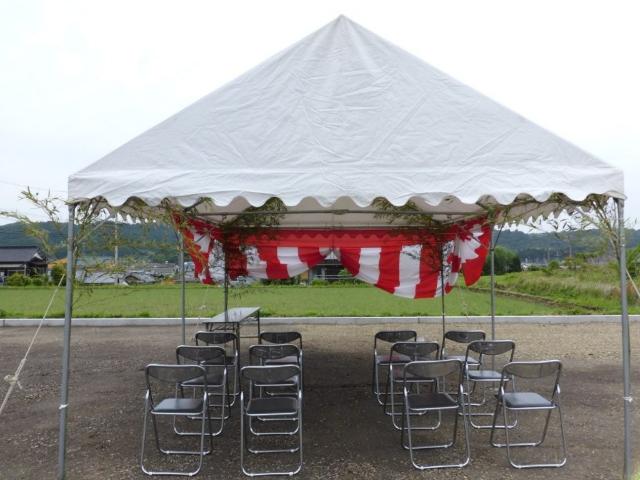 造成完了後、地鎮祭を執り行いました。下の写真は、その準備の様子です。地鎮祭は、基本的にその地域の氏神様を祀る神社に依頼するようにしています。
