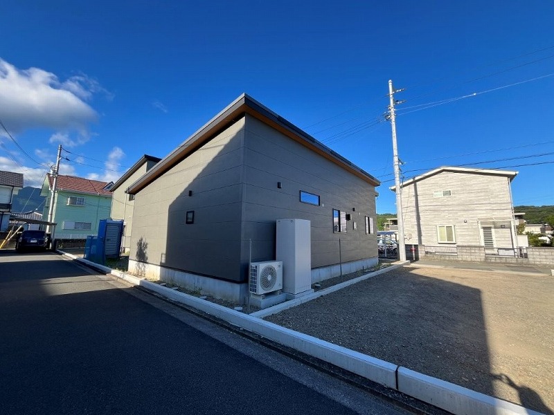 なんとか外観の写真をブログに載せたいと思い、建物の裏側へ回り込み、もう一枚撮影。落ち着いた印象の明るいグレーの外観が魅力のY様邸です。