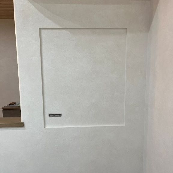 もうひとつは、タカラスタンダードのマグネットウォール(ホーロー製の壁パネル)です。Y様邸ではキッチン横に設置しています。学校からの手紙や町内会のお知らせなどを磁石で貼り付けられるので、とても便利です。さらにY様邸では、マグネットウォール部分を凹ませてニッチのような印象に仕上げています。