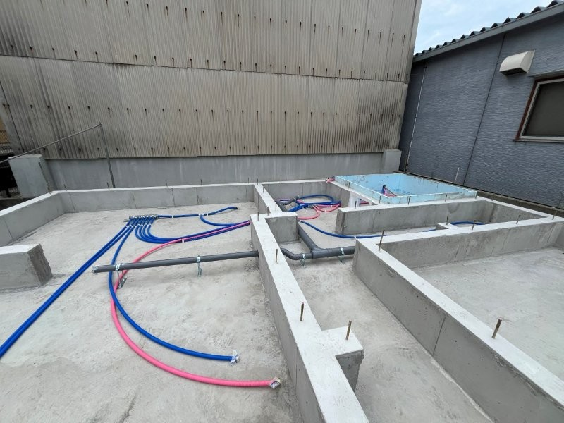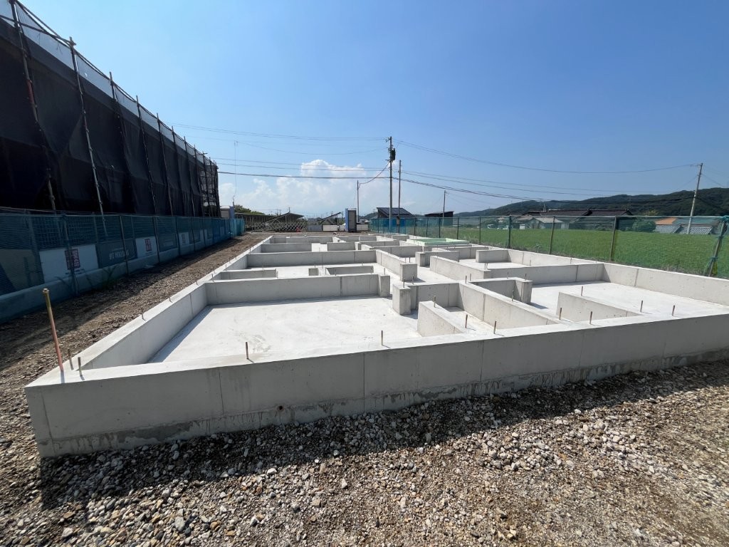 基礎工事が完成し、ひと休み中のT様邸の建築現場です。上棟は9月上旬に予定しています。