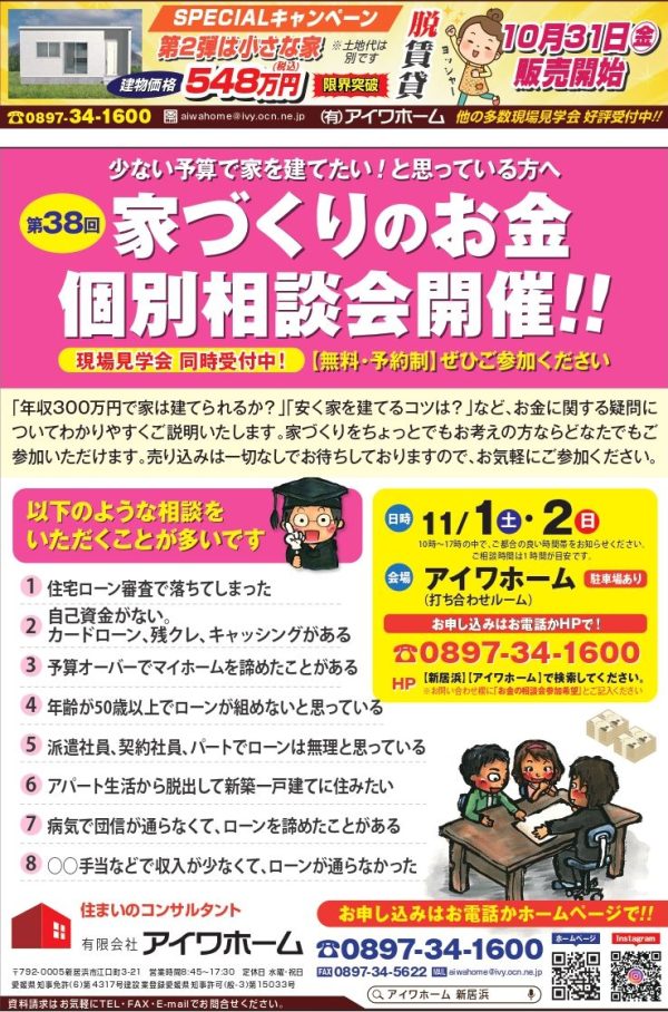 11月1日・2日に家づくりのお金・個別相談会を開催します!(無料・予約制)。