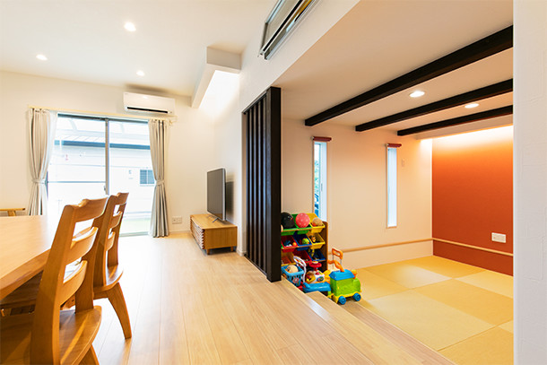 (ご主人)僕はくつろげる和室が欲しかったので、リビングの隣に作った半地下の畳スペースはとても気に入っています。あとは間接照明を使っておしゃれでリラックスできる空間を希望しました。インターネットでいろいろと情報収集をして、これがいい、こんな風にしたいと社長に相談して、ほとんどの要望をかなえてもらいました。