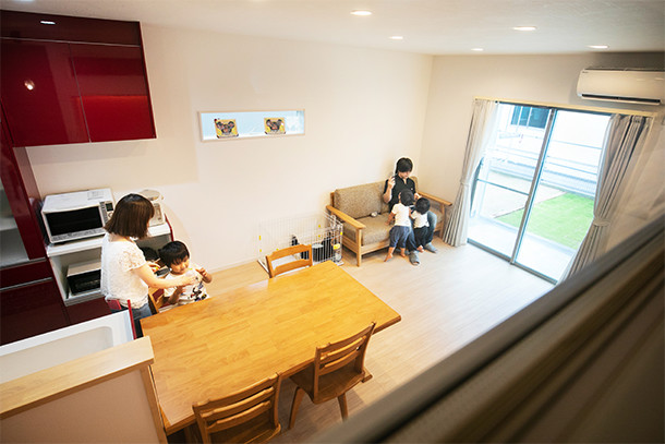 元気いっぱいの息子3人も、スキップフロアの家をかなり気に入っていて、家中を裸足で走り回っています。その楽しそうな姿を見て、私もうれしくなります。
